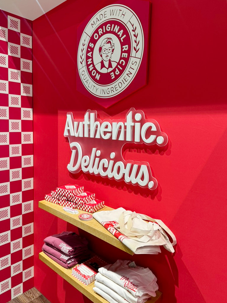 This shift not only met retailer expectations but also gave the brand a larger canvas to express its personality. The box format let us introduce layered visual details like horizontal banners, rich colors, and elevated type, while photography captured the signature rise of the Sicilian crust through an angled cut designed to shine, even in a top-down view.